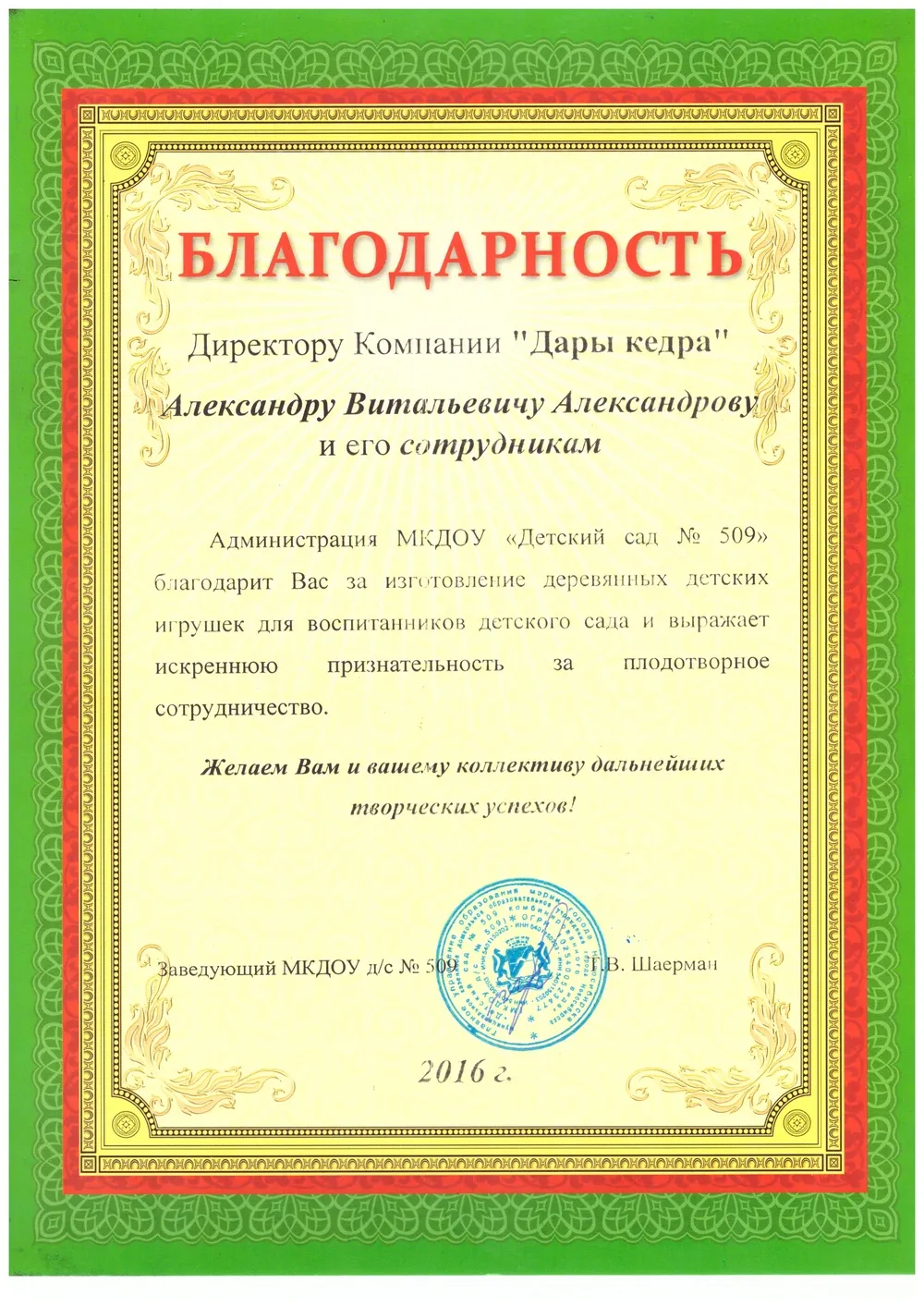 Летом 2019 года приобрела в Дарах Кедра баню-бочку, крашенную по моим требованиям. С заказом справились в срок, документальная часть меня порадовала - всё очень добросовестно, по договору. Доставка и установка, а также подключение бани было сделано сотрудниками компании. Спасибо!