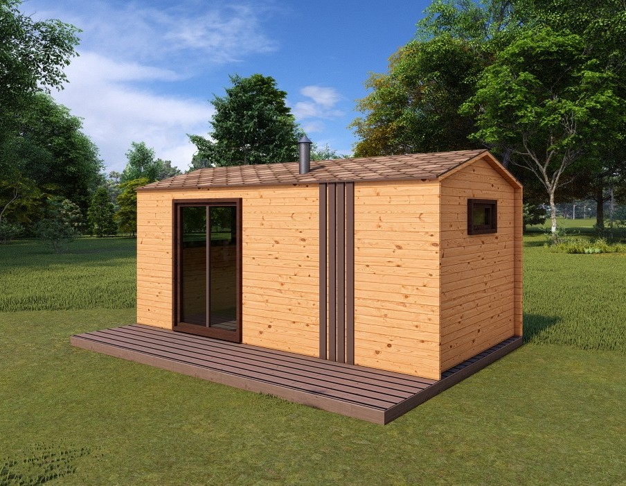 Каркасно-щитовая баня из кедра «Мини» с верандой Это классическая прямоугольная модель бани с двумя отделениями: парилкой и раздевалкой. Для удобства пользования раздевалка оснащена лавочкой и вешалкой. Парилка оборудована двухуровневым открытым полком и печью. За счет небольшой конструкции баня нагревается в течении 30 минут. На просторной веранде можно оставить вещи или отдохнуть после парения. Каркасно-щитовую баню можно заказать как в готовом, так и в разборном варианте. В разборной модели готовые щиты из кедра быстро собираются в полноценное строение, что также позволяет исключить лишний строительный мусор. Такая баня не требует полноценный фундамент, поэтому при необходимости ее можно перенести в другое место. Обращаем Ваше внимание, что в стандартную комплектацию бани входит полок открытого типа в парной. Дополнительно можно заказать полок закрытого типа или лавку! Древесина кедра насыщена эфирными маслами и фитонцидами, которые активируются при воздействии температур. Таким образом, парение в каркаско-щитовых банях из кедра становится еще полезнее.