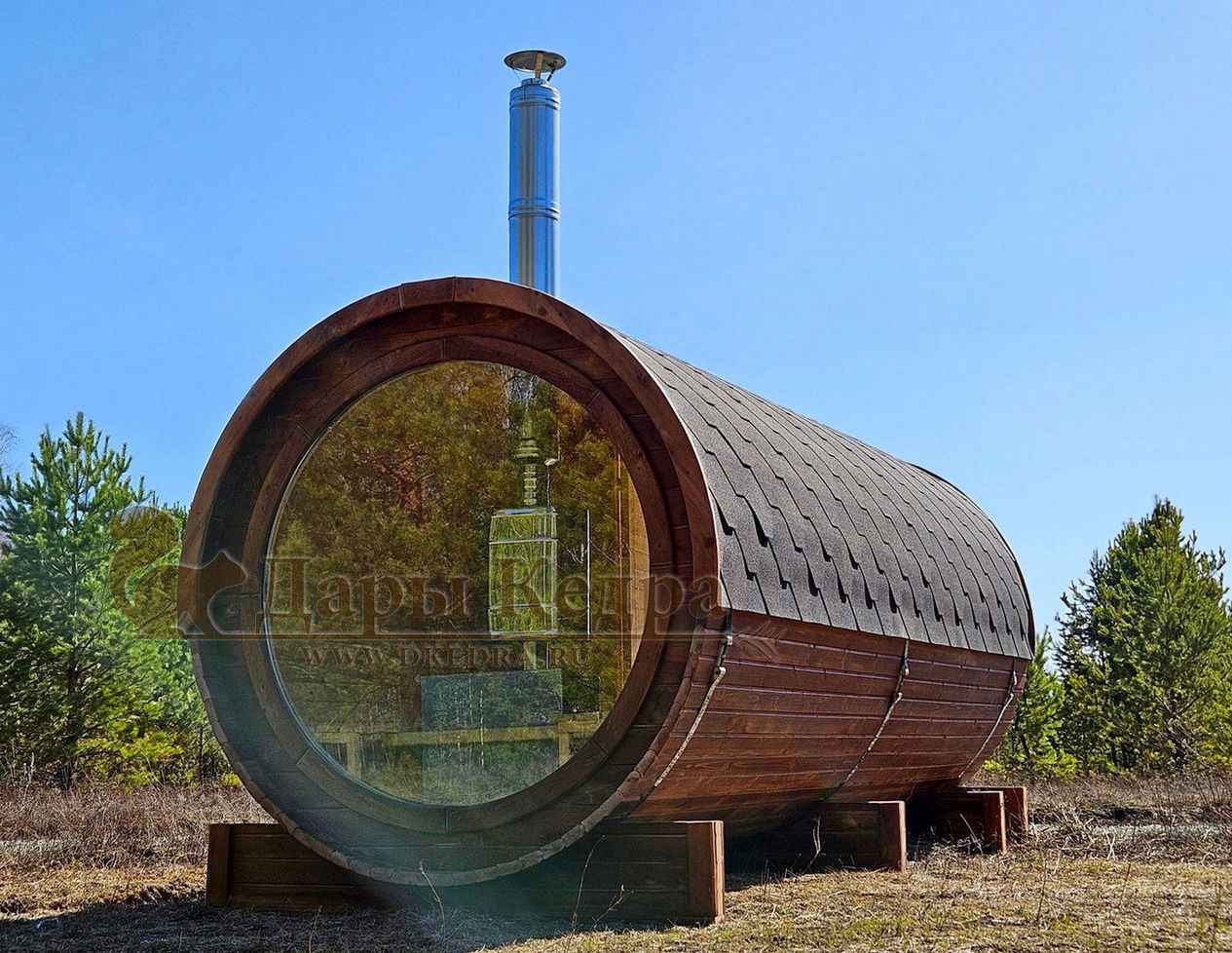 Баня-бочка «Орео» с боковым входом и панорамным окном
