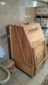Приступок с двумя ступенями, позволит комфортно заходить в кедровую бочку и выходить из неё.