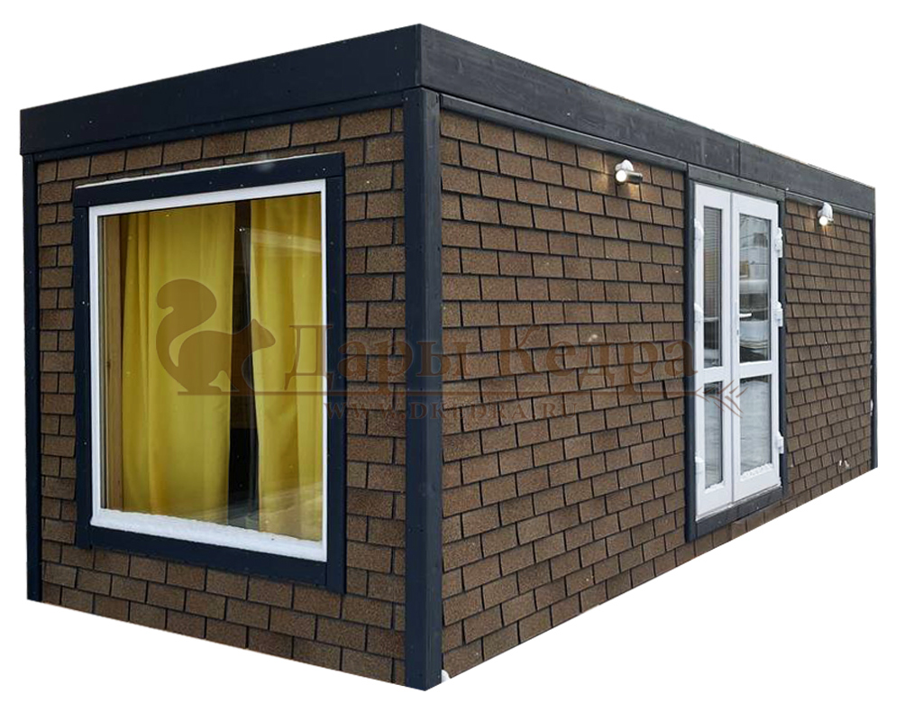 Это домик прямоугольной формы с панорамным окном и двумя помещениями: комнатой отдыха и санузлом с душевой зоной. Может быть изготовлен по готовым стандартам или вашим индивидуальным размерам. Современные материалы, используемые при проектировании, отличаются экологичностью и прочностью.