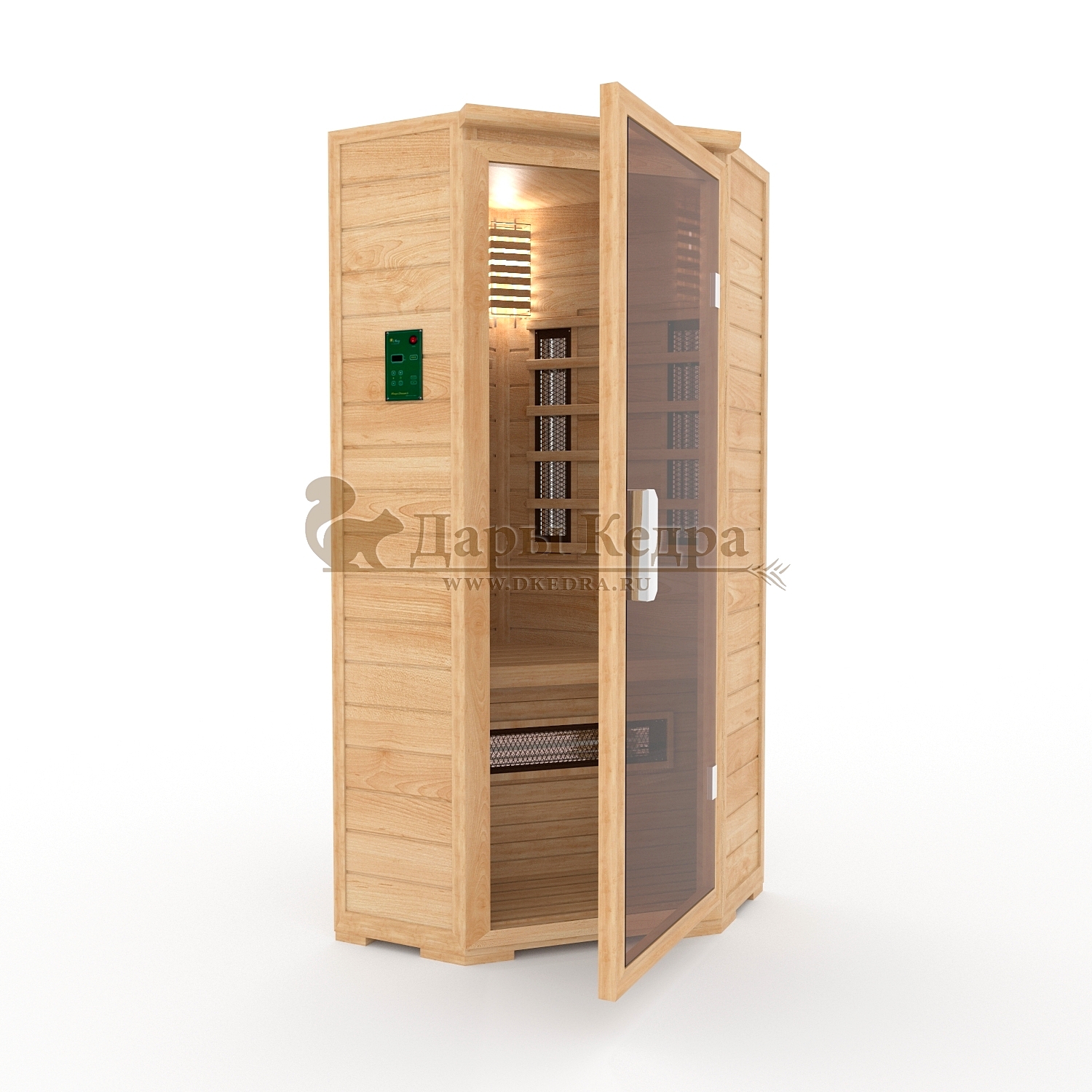 • Двухместная угловая инфракрасная сауна кабина из кедра с керамическими излучателями Это специально оборудованная кедровая кабина для прогрева тела человека сухим теплом. Воздух в таких парных не нагревается. Инфракрасные лучи воздействуют на тело, равномерно прогревая мышцы, суставы и органы. Керамические излучатели похожи на лампы, имеют высокую температуру нагрева, поэтому защищены противоожоговыми решетками. Тело человека в таких саунах нагревается интенсивнее. Работает кабина за счет электричества. Установка сауны в угол, позволяет рационально использовать пространство помещения. Подходит как для домашнего использования, так и для коммерции. Обращаем Ваше внимание что в стандартную комплектацию входит трапик для ног, но вы можете его заменить на цельный пол совершенно бесплатно! Целебная древесина кедра и инфракрасные лучи благотворно влияют на организм человека в целом. При регулярном использовании инфракрасной сауны укрепляется иммунитет, улучшается кровообращение и состояние кожи, выводятся токсины.