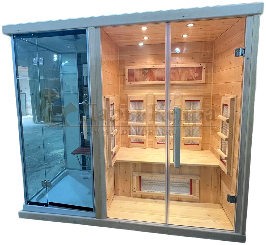 Душевая и сауна встроенные. Заказ был индивидуальный, спасибо Дарам Кедра за качественный сервис и консультацию! Собирал сам по инструкции. Дня два ушло, но результатом доволен!