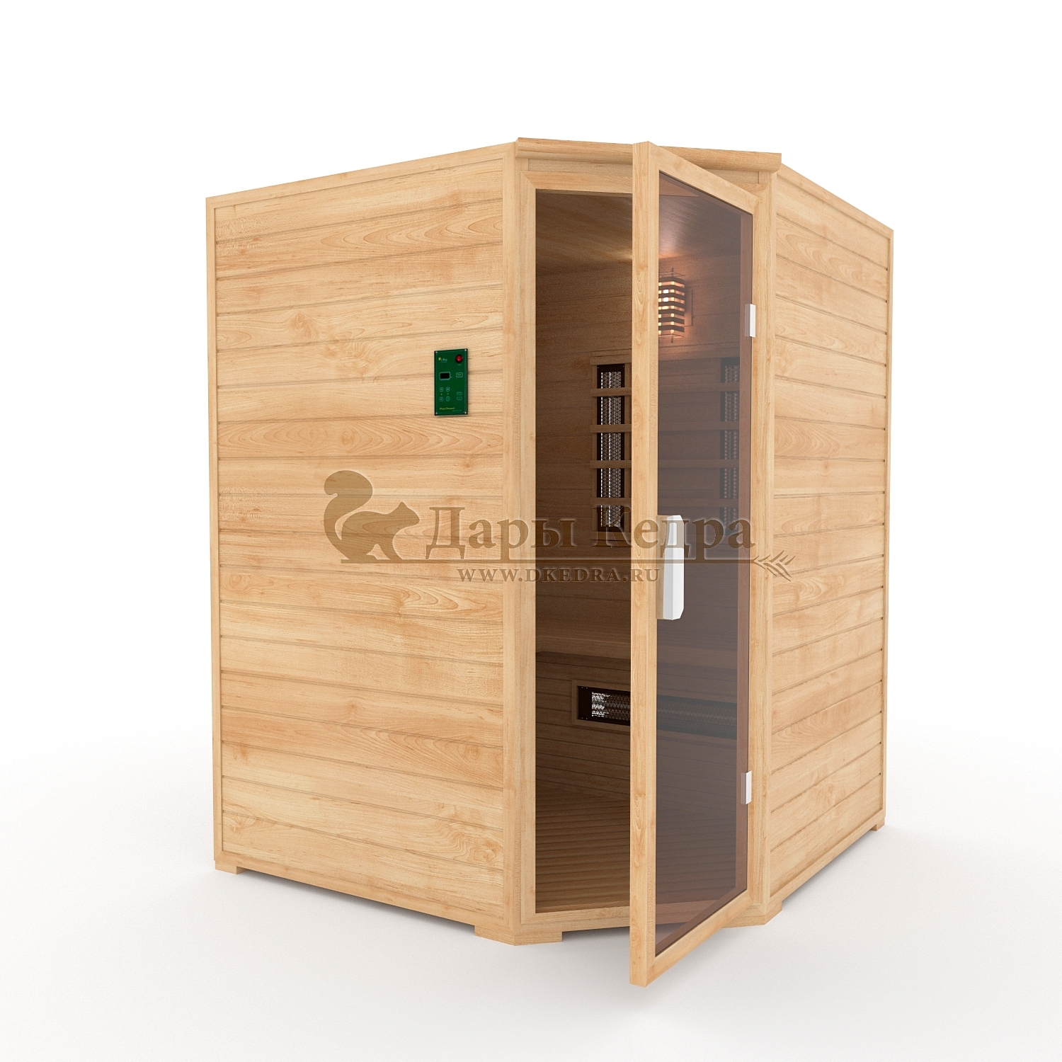 Трёхместная угловая инфракрасная сауна кабина из кедра с карбоновыми излучателями
